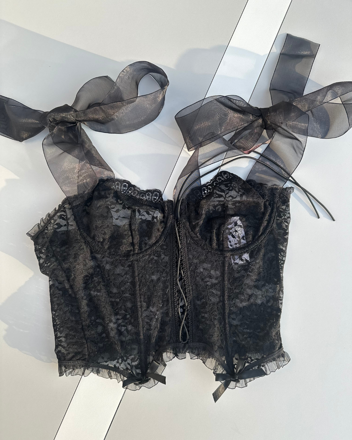 Pieza estilo romantic vintage tipo top semi transparente con sujeción ligera, tela ligera stretch.